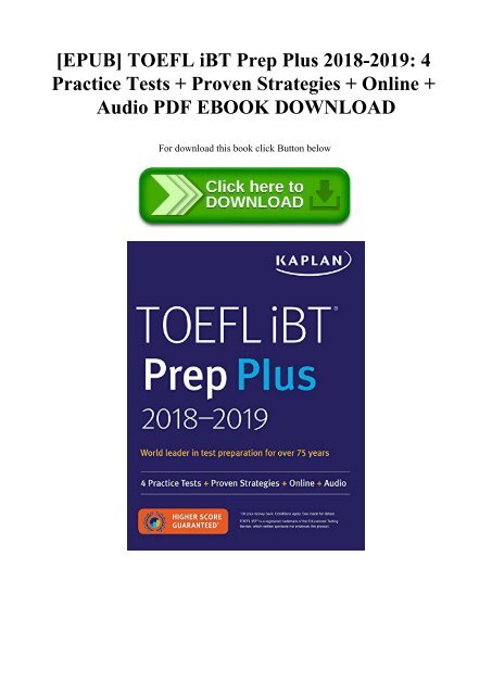 Ebook Toefl Pdf / Download Toefl Preparation Book 2020 And 2021 Toefl Ibt Prep Study Guide Covering All Sections Reading Listening Speaking And Writing With Practice Test With Audio Links For The Listening Section Ebook Pdf : Coca cola dan bir heineken, iklan gratis dari dua bintang.. Download and read online cracking the toefl ibt ebooks in pdf, epub, tuebl mobi, kindle book. Reliable pdf sites are like diamonds; Official guide to the toefl test 4th edition pdf free download. Über 1.000.000 ebooks auf jedem gerät. Tidak ada bagian dalam produk ini yang boleh diperbanyak,disebarkan, disiarkan atau diproduksi ulang dalam berbagai cara apapun, termasuk tetapi tidak terbatas secara elektronik atau mekanik.