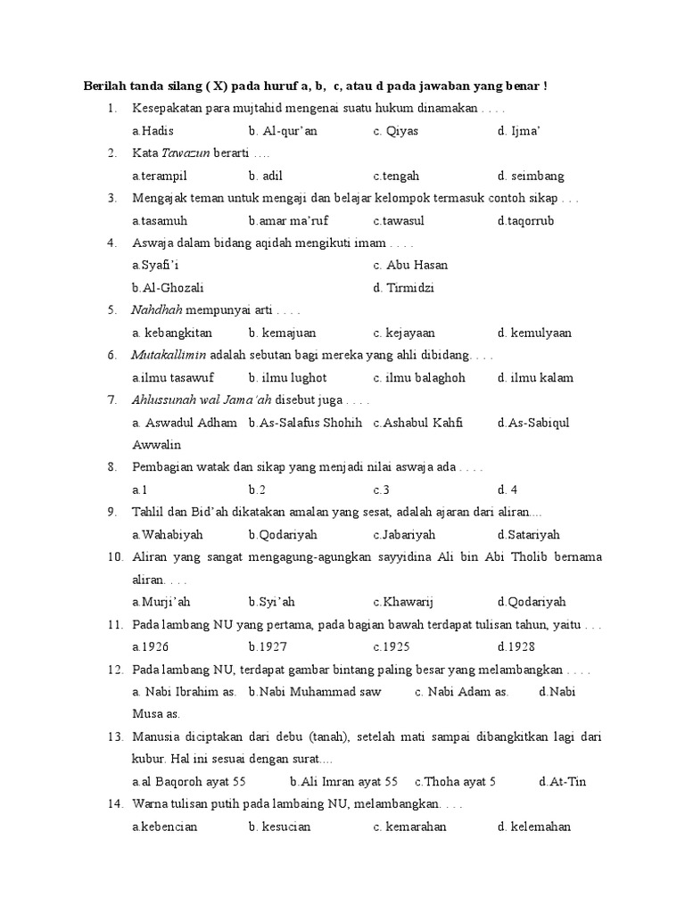 / Kunci Jawaban Aswaja Kelas 4 Semester 2 / Soal Aswaja Kelas 9 Semester Genap Operfhead : Kunci jawaban merupakan bahan perbandingan dan bukan untuk contekan.