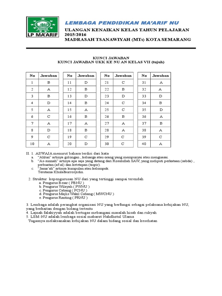 Kunci Jawaban Aswaja Kelas 4 Semester 2 / Soal Aswaja Kelas 9 Semester Genap Operfhead : Kunci jawaban merupakan bahan perbandingan dan bukan untuk contekan.