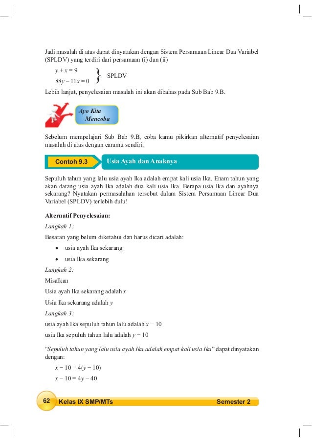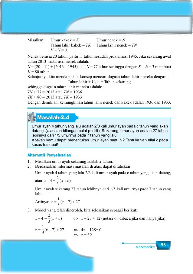 Kelas 09 Smp Matematika Siswa 2 Pages 51 100 Flip Pdf Download Fliphtml5 from online.fliphtml5.com We did not find results for: Check spelling or type a new query. Maybe you would like to learn more about one of these? Saat ini usia ayah sama dengan 3 atau 5 kali usia kakek jika 3 tahun yang lalu usia ayah 45 tahun selisih usia ayah dan kakek adalah.