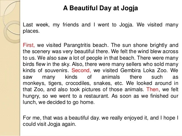 Contoh Recount Text Pengalaman Pribadi / Comparing The Language Features Of Recount Texts Membandingkan Unsur Kebahasaan Teks Recount Widayati Izwa - Hai pengunjung setia sekolah bahasa inggris, pada artikel kali ini admin akan membagikan satu buah contoh recount text tentang pengalaman buruk beserta .. The first trip to lombok, . Pengalaman pribadi atau personal recount text. I flew 2575.5 km to lombok. Sobat cerita juga dong pengalam sobat di sekolah di komentar, . Recount text adalah salah satu materi pelajaran bahasa inggris.